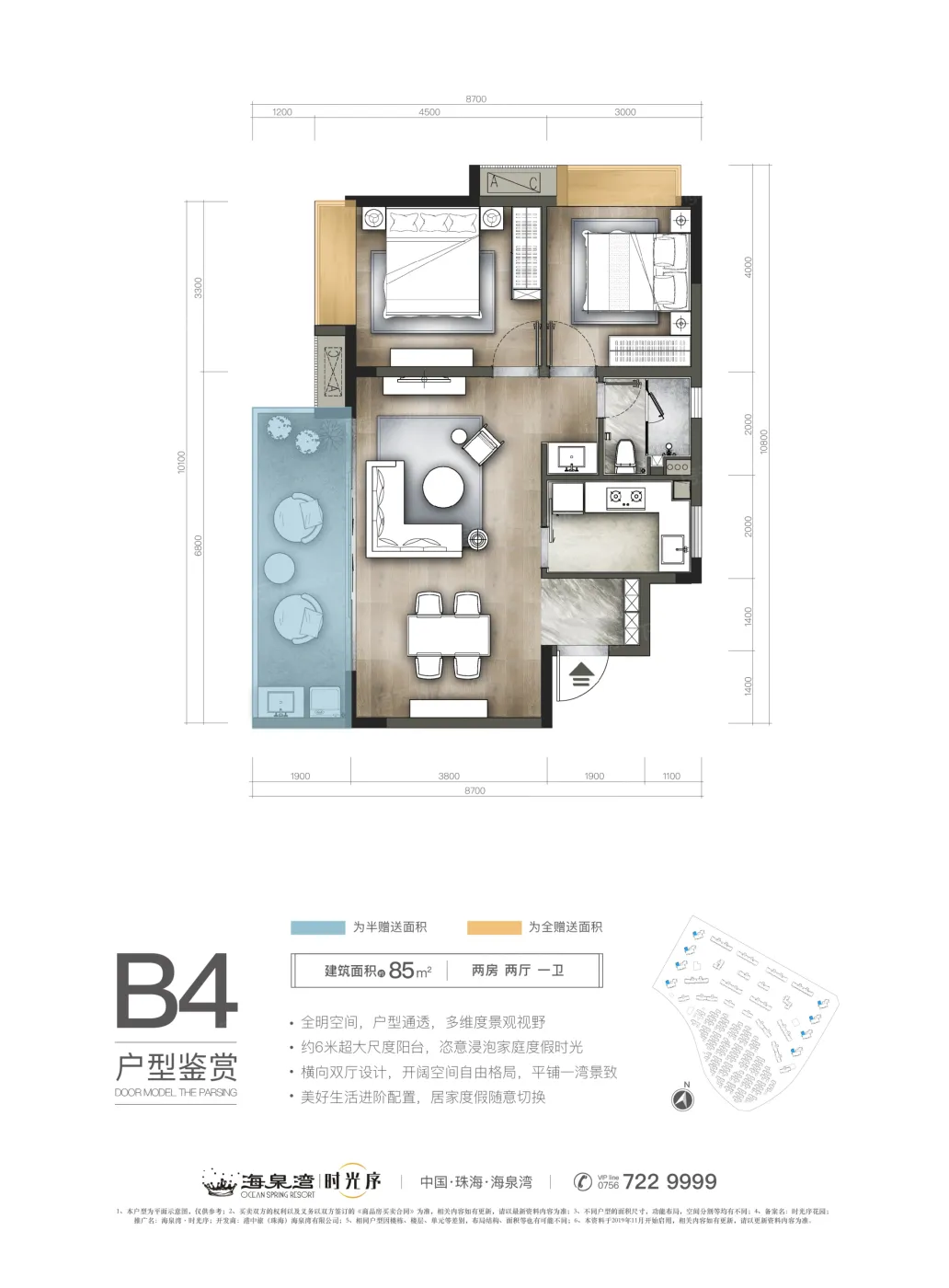 海泉湾时光序,是海泉湾约5.1平方公里版图之上,即将推出的二期住宅组团。是中国旅游集团在粤港澳大湾区、珠海黄金海岸线上倾力钜献的旅居升级之作。由澳大利亚柏涛、香港贝尔高林联袂规划设计,结合滨海特性,打造极具度假风情的全生态居所,包括27栋小高层和25栋合院。小高层户型建筑面积约为62-124㎡,合院户型建筑面积约为185-225㎡。海泉湾时光序,首次提出了“重构时空”的旅居新概念,重构的不仅是生活方式,是人与社区的情感联结,更是一种新的家庭生活观念。我们始终从业主的核心需求出发,践行于创造高品质的日常生活,时空重构,未来可期。海泉湾时光序将成为珠三角乃至全国都市家庭的旅居之地。