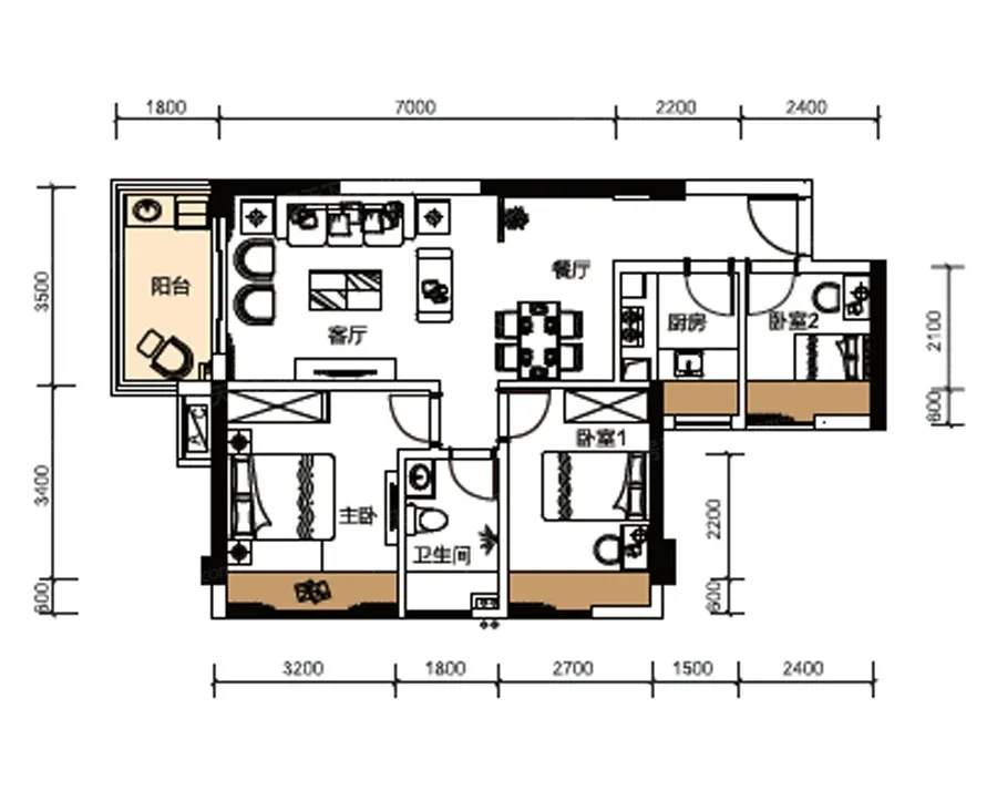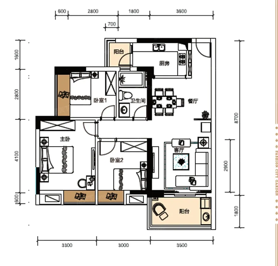 户型面积84.99㎡-93.03三房两厅一卫