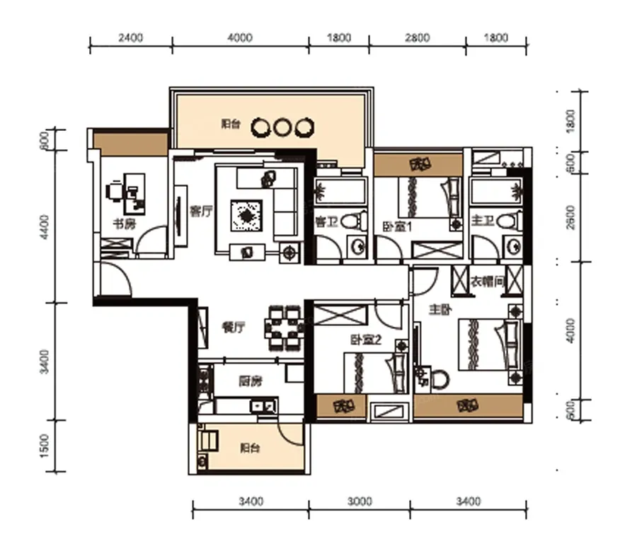 户型面积110.58㎡-110.8㎡四房两厅两卫